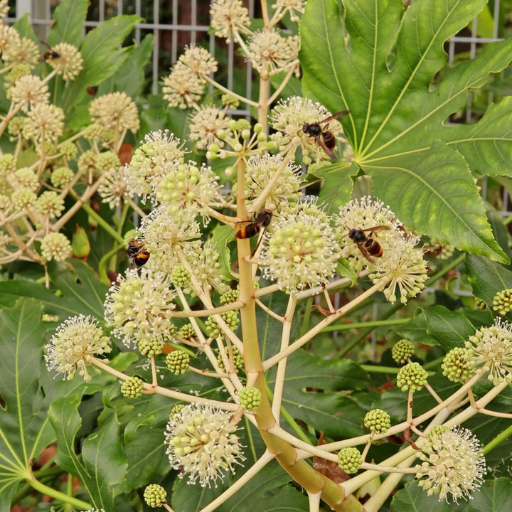 Le lierre est en pleine floraison et c'est donc dans ces plantes que les frelons sont le plus visibles.